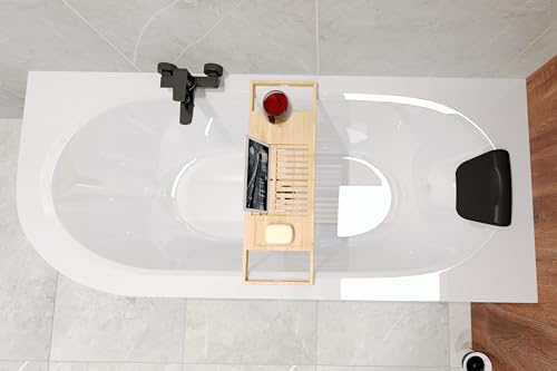 Badland Badkuip, origineel wit, acryl, hoekbad Avita, 180 x 80 cm, rechts, complete set + bamboe legplank + hoofdsteun + poten en exclusieve automatische afvoergarnituur, Made in EU, 5-in-1
